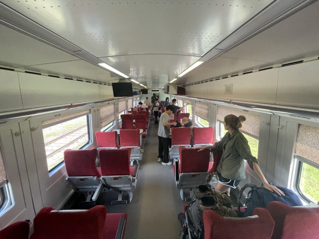 The direct train to Zugdidi departs daily from Tbilisi at 8:20 in the morning and from Kutaisi Airport at 12:50 (note: this station is a 20 minute drive outside of Kutaisi). The train arrives in Zugdidi at 15:08. From there, it’s about another 3 hours drive by marshrutka to Mestia. The train from Kutaisi Airport costs 13 GEL per person in second class (which is completely fine) or 25 GEL per person in first class (a bit more spacious). From Tbilisi, a second class ticket is 17 GEL and a first class ticket is 29 GEL. The onward marshrutka to Mestia costs 35 GEL per person (cash).